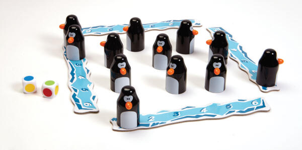 Our penguins are ready to play with you. Roll the colored dice and find the matching eggs hidden under the penguins. The first player to collect six penguins and their eggs on their iceberg wins. Memory skills and a little luck will help you win this exciting expedition to the South Pole.