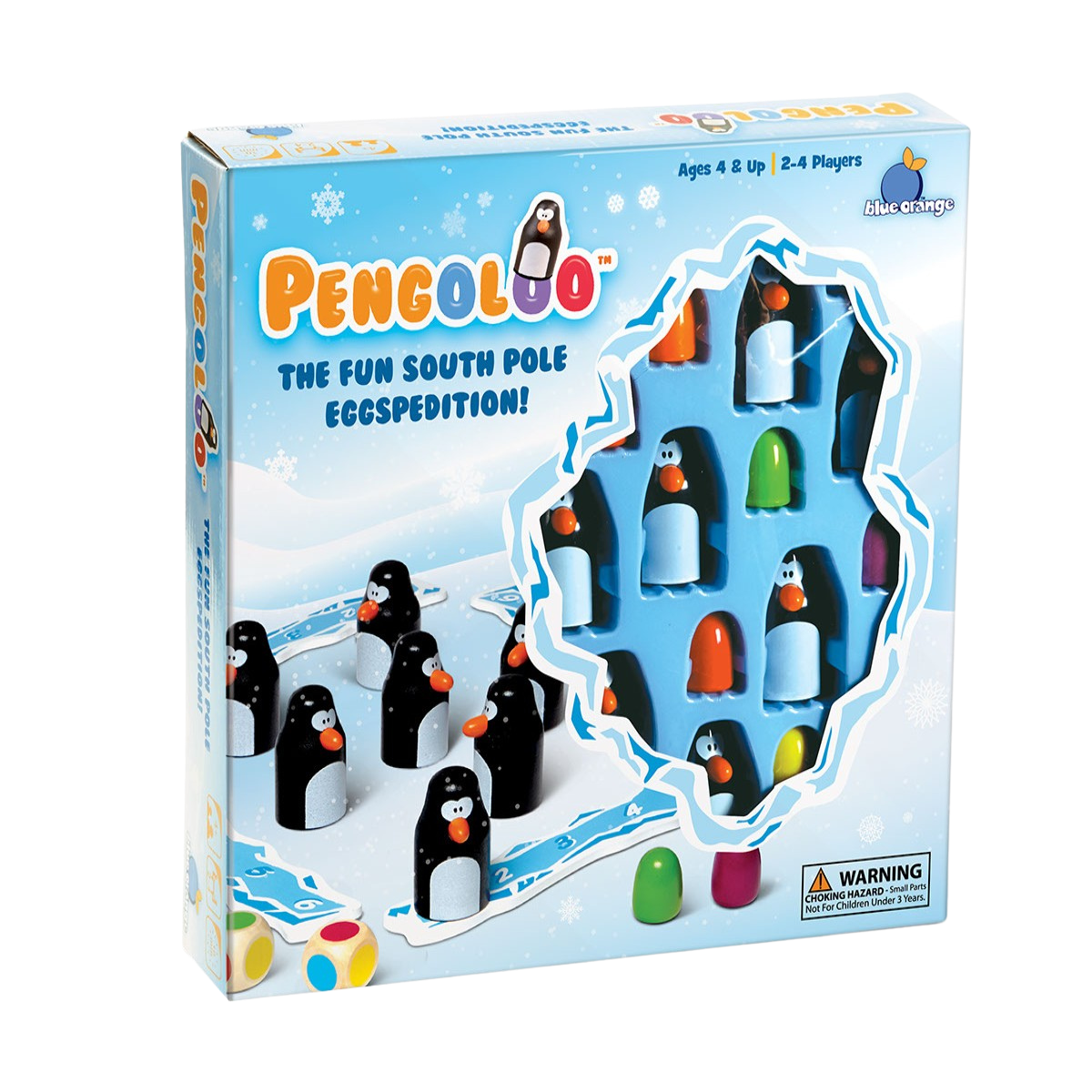 Our penguins are ready to play with you. Roll the colored dice and find the matching eggs hidden under the penguins. The first player to collect six penguins and their eggs on their iceberg wins. Memory skills and a little luck will help you win this exciting expedition to the South Pole.