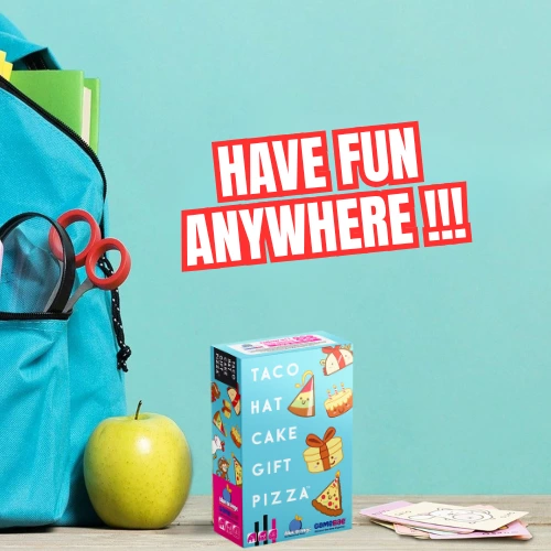 Compact, portable, and requiring no complicated setup, Taco Hat Cake Gift Pizza is the perfect game to bring wherever fun is needed.